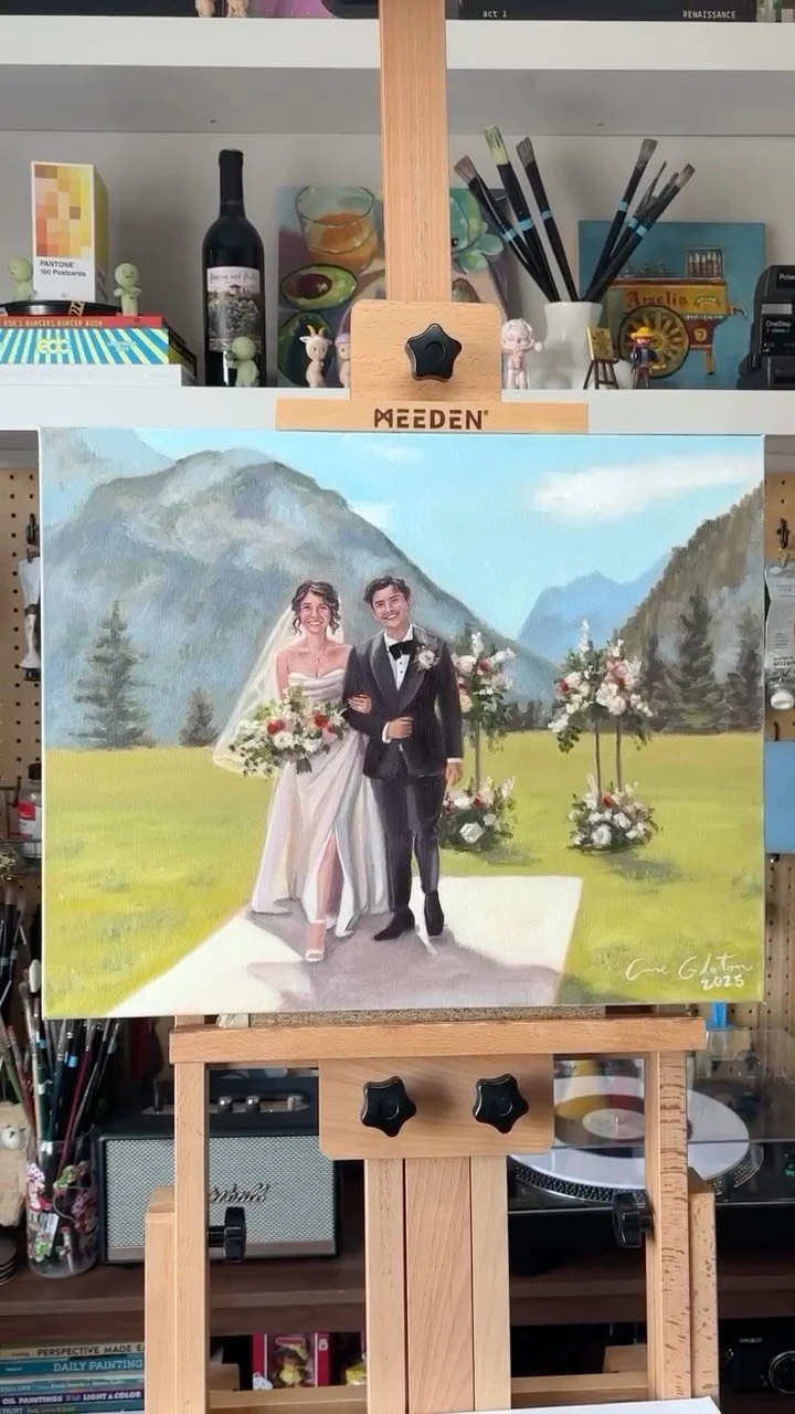 Your wedding day is a once-in-a-lifetime event, and your love story deserves to be captured in a truly unique way. With every brushstroke, I create a custom oil painting that reflects your special moment's emotions, atmosphere, and beauty. This artwork is handcrafted in real time, ensuring that you have an irreplaceable keepsake to cherish for generations.
