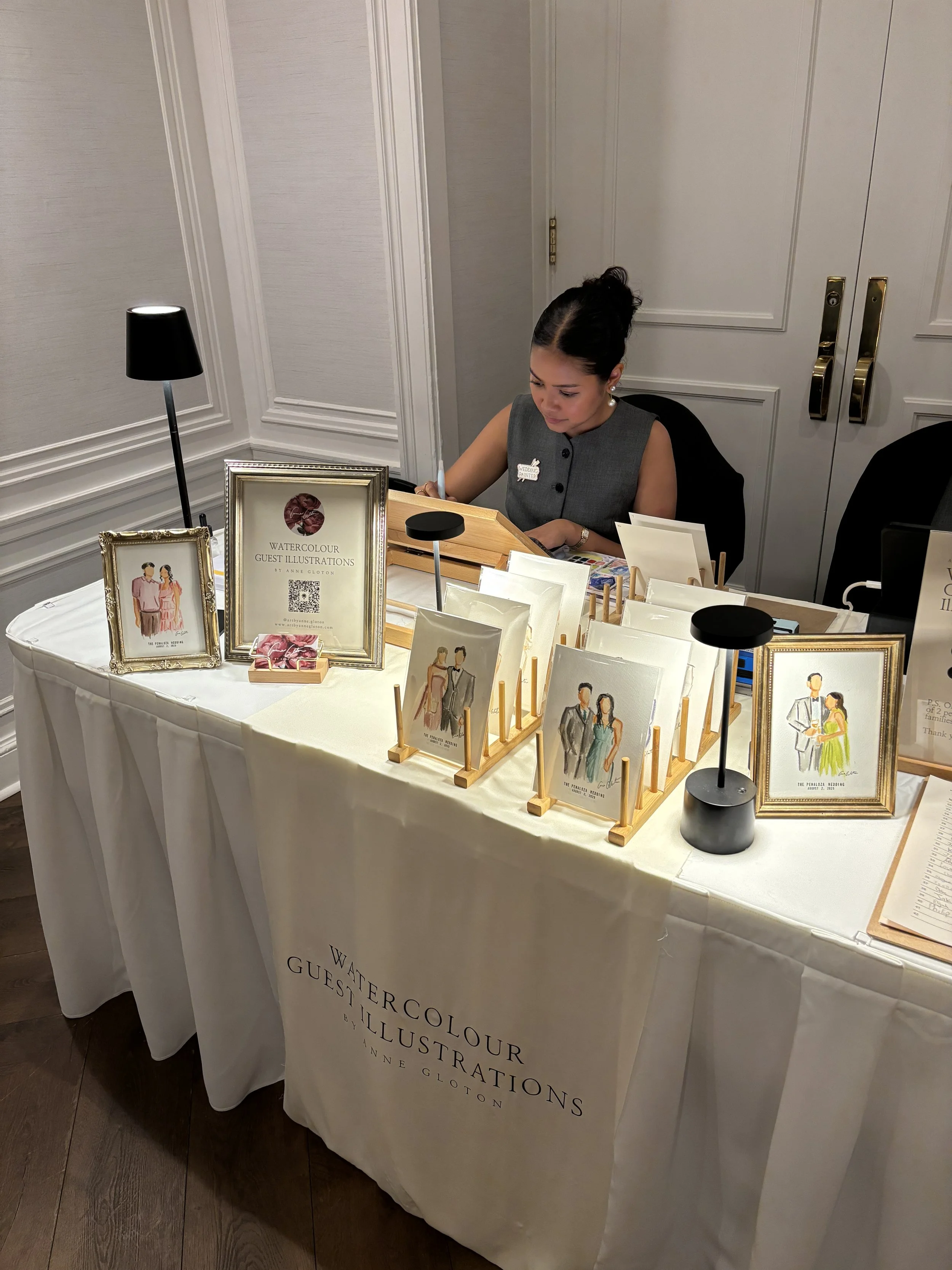 The artist will capture the essence of the wedding by painting illustrations of guests in real-time. The live painting will add a touch of artistic flair and entertainment to the wedding, leaving guests with a personalized illustration that will be cherished from your special day.